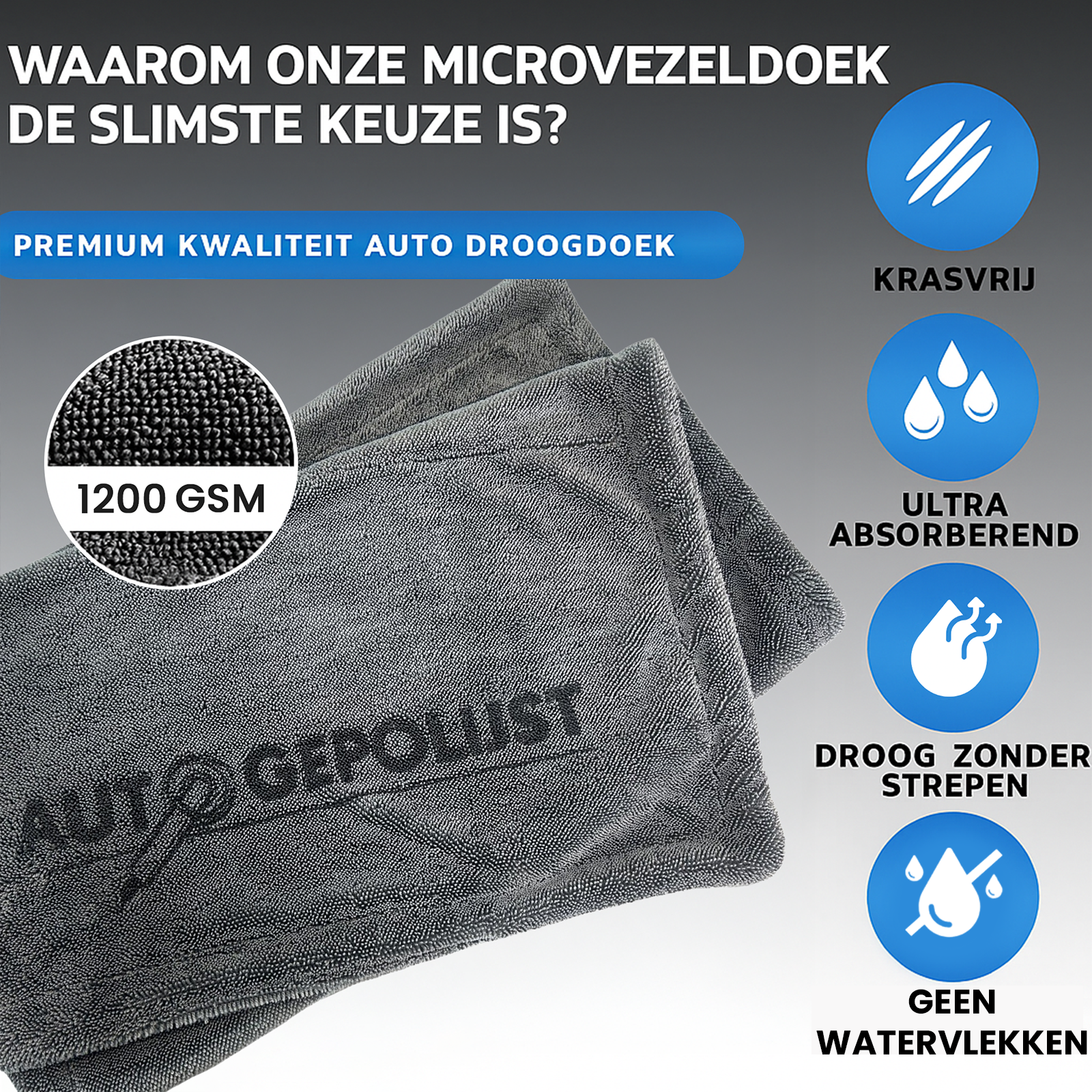 Ervaar zelf hoe snel en makkelijk je auto droog is met de AutoGepolijst® Microvezeldoek! Bestel nu en ontdek waarom elke autoliefhebber deze droogdoek moet hebben!